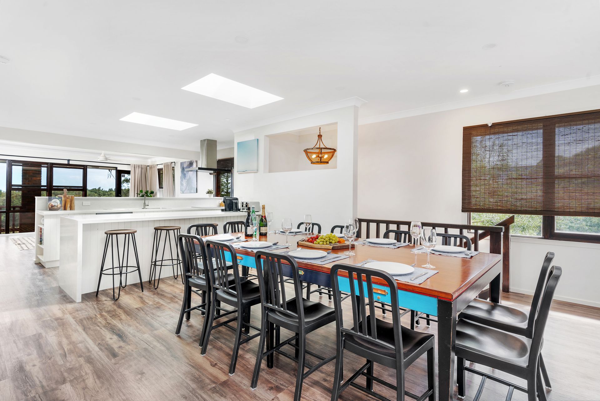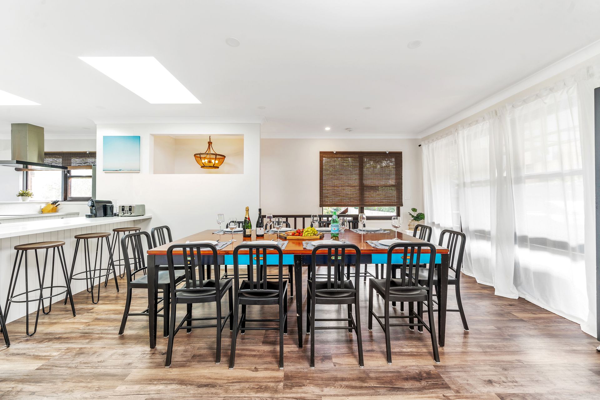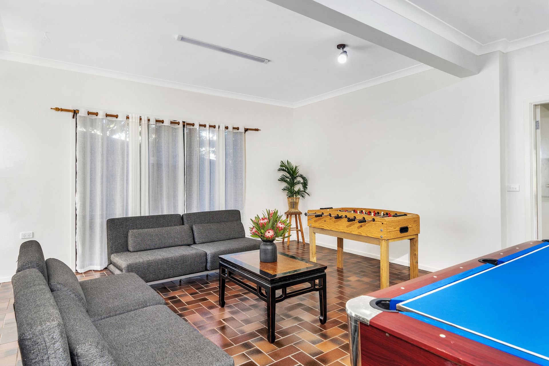 Seven Smiles is the perfect Gerroa beach house. Located two doors down from the famous Blue Swimmer Restaurant and a 3 minute walk to Seven Mile Beach, you can enjoy the best that Gerroa has to offer, all on foot. The property can accommodate up to 8 people, with 4 bedrooms and 4 bathrooms. The heart of the home is the open plan living, dining and kitchen area, with beautiful views over the estuary to Seven Mile Beach. Children will love the games room with mini table tennis and pool table.