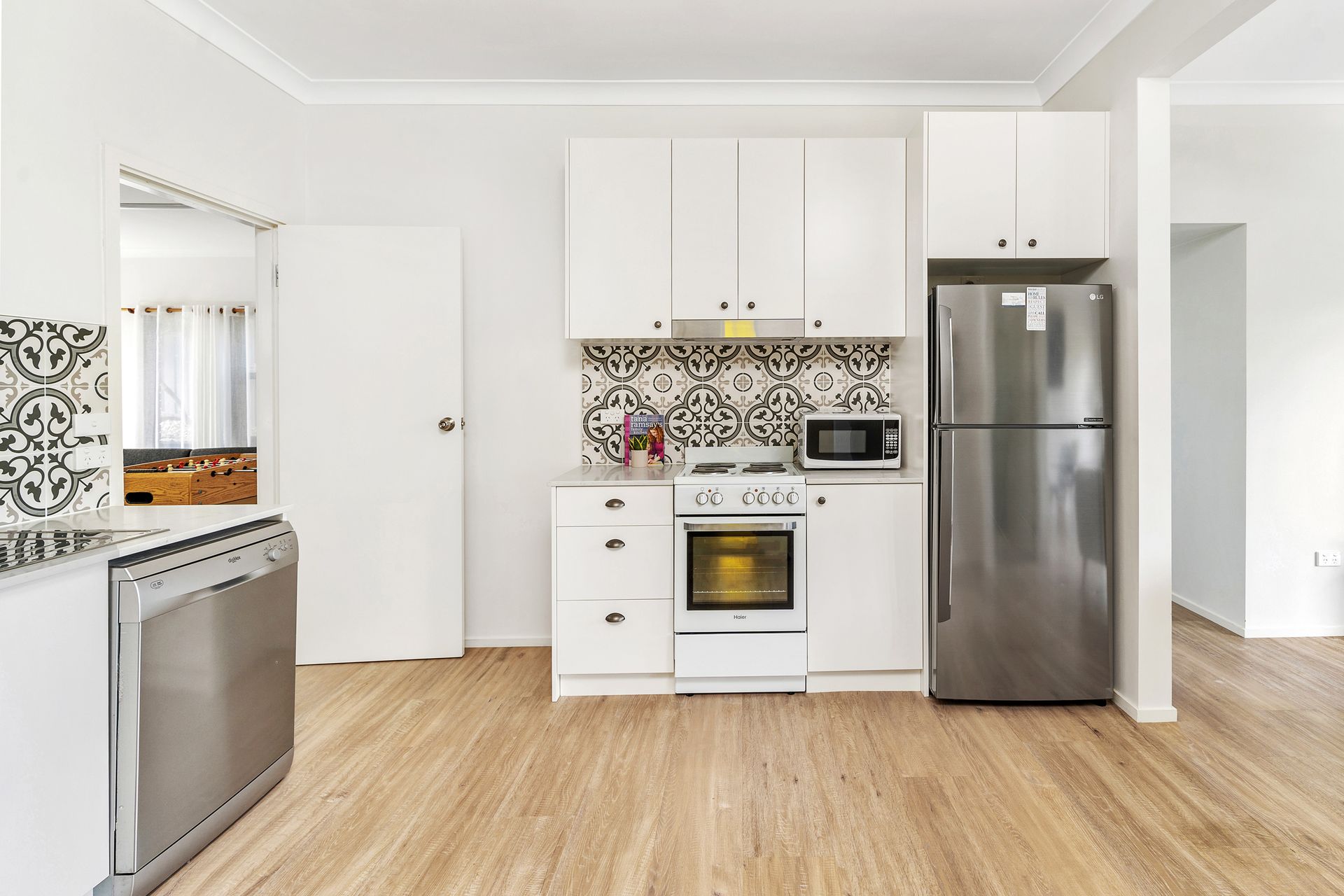 Seven Smiles is a renovated two storey brick house. Entry via the back deck takes you into the second level. Here you will walk into the main kitchen, living and dining area. This large open plan space enjoys beautiful views of Seven Mile Beach. There are two bedrooms on this level, including the master with a queen bed and ensuite. The other bedroom has two single beds. There is also a bathroom with bathtub and separate shower. Heading downstairs you will find a kitchenette, two bedrooms, one with a queen bed and the other with two singles, a living room, games room, bathroom and laundry. There is also a downstairs patio area. The large deck at the back of the property features a gas BBQ, outdoor setting and outdoor lounge.