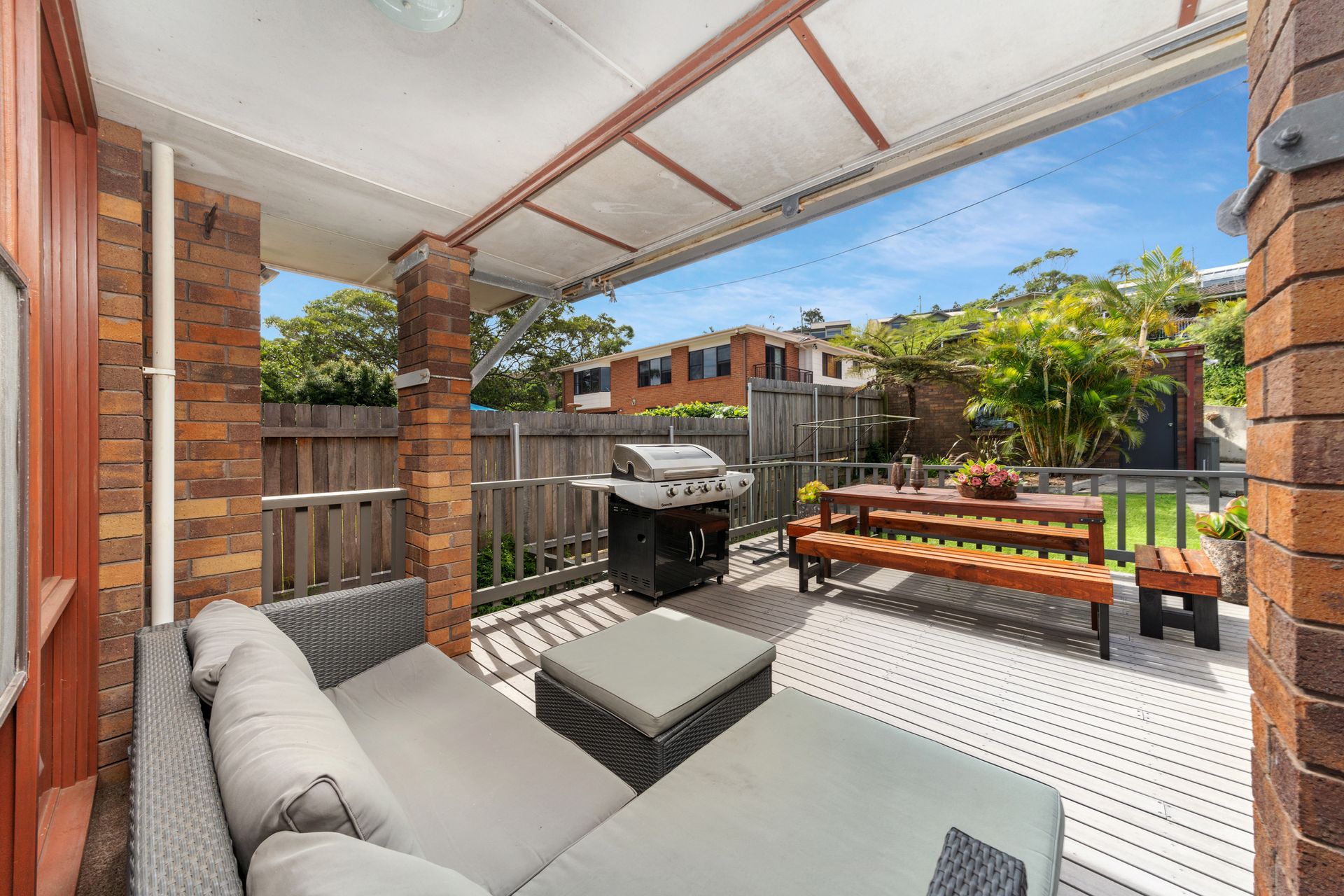 Seven Smiles has a large back deck, with gas BBQ, outdoor dining setting and outdoor lounge. Emery park, with playground and lawns is 120 metres away and Seven Mile Beach a short stroll.