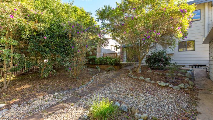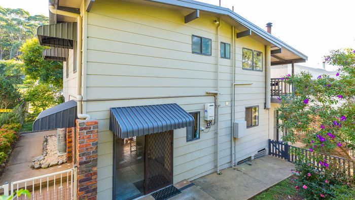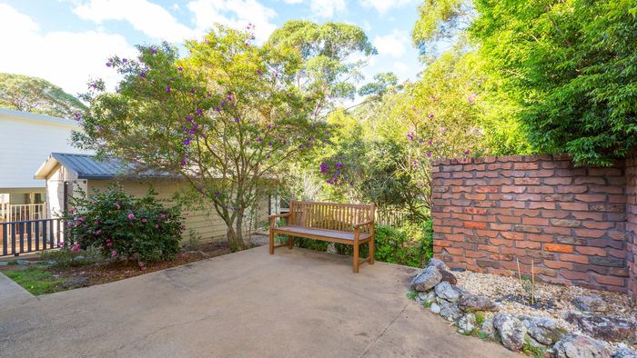 Shanti adjoins a creek and its riverine bush at the rear of the property. There are lovely bush aspects from nearly all parts of the house, and the rear garden is a lovely area to sit and relax under the trees.
