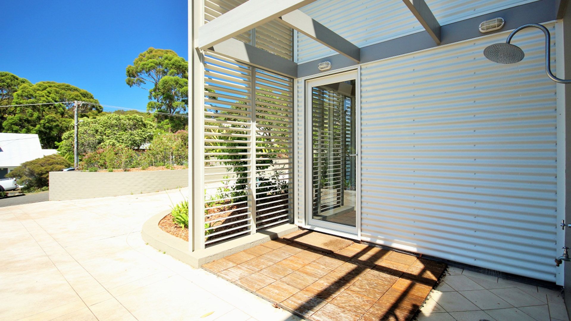 Shorelines is located at the bottom of Bayview Avenue just above the main access to Hyams Beach. It is also an easy walk to the Hyams Beach Cafe or the access point to the National Park. Shorelines is the front unit of two, facing the street.