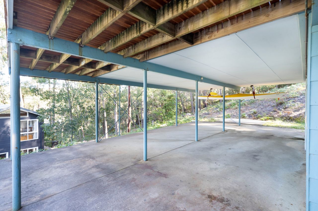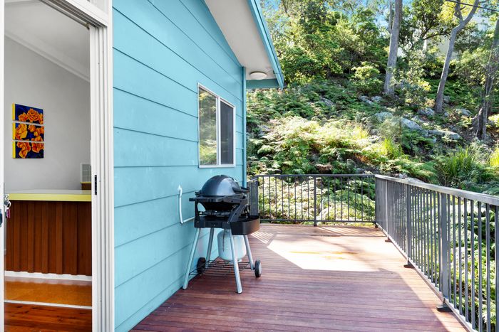 Summerdaze has a lovely bush setting, with the Jervis Bay National Park at the rear, and plenty of natural trees around. The house has a covered area under the house (for use as parking or a ball games area for kids), and on the main living level, there is a full width timber deck with gas BBQ.