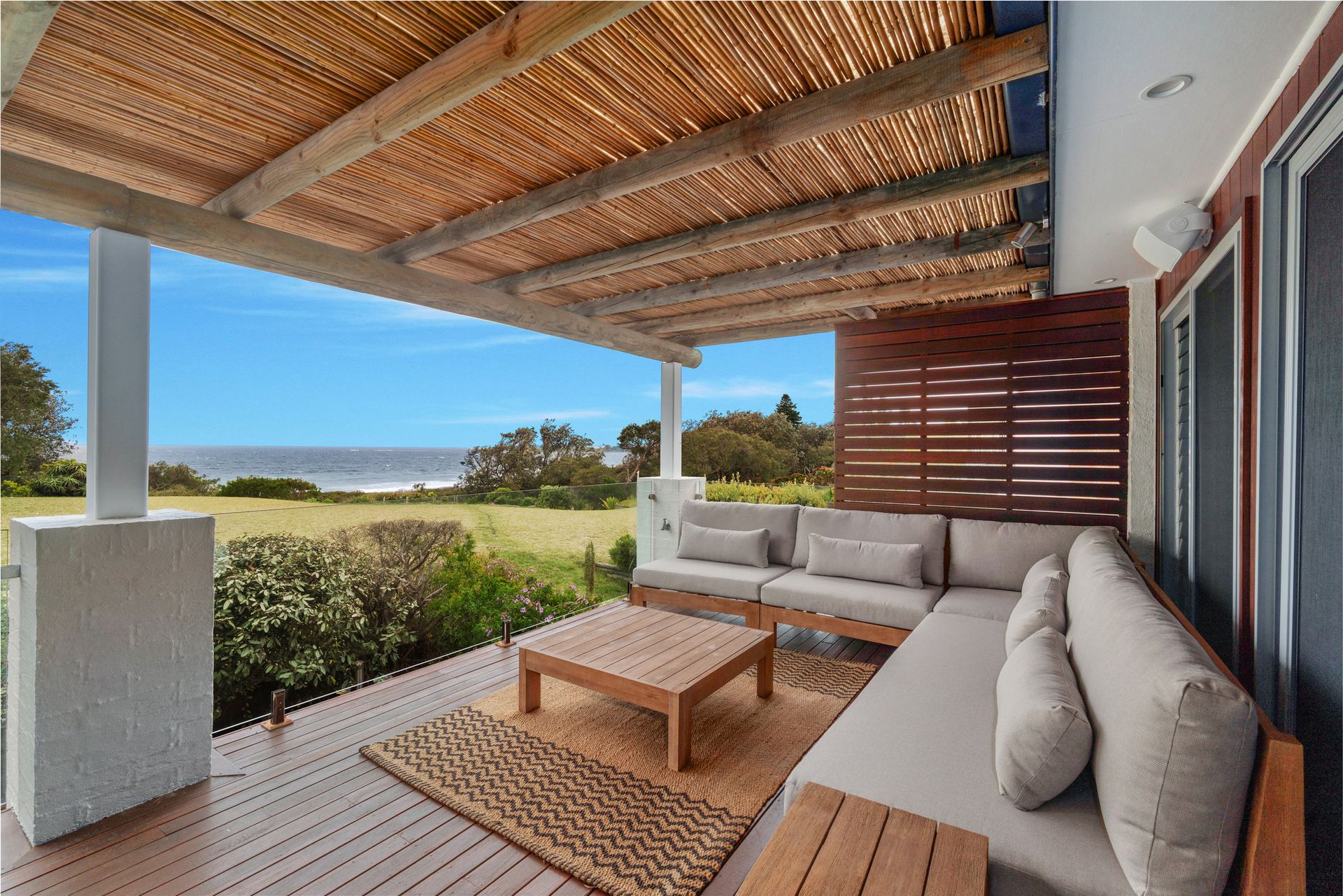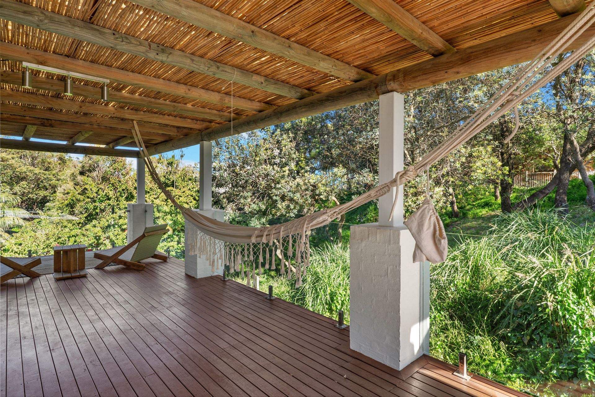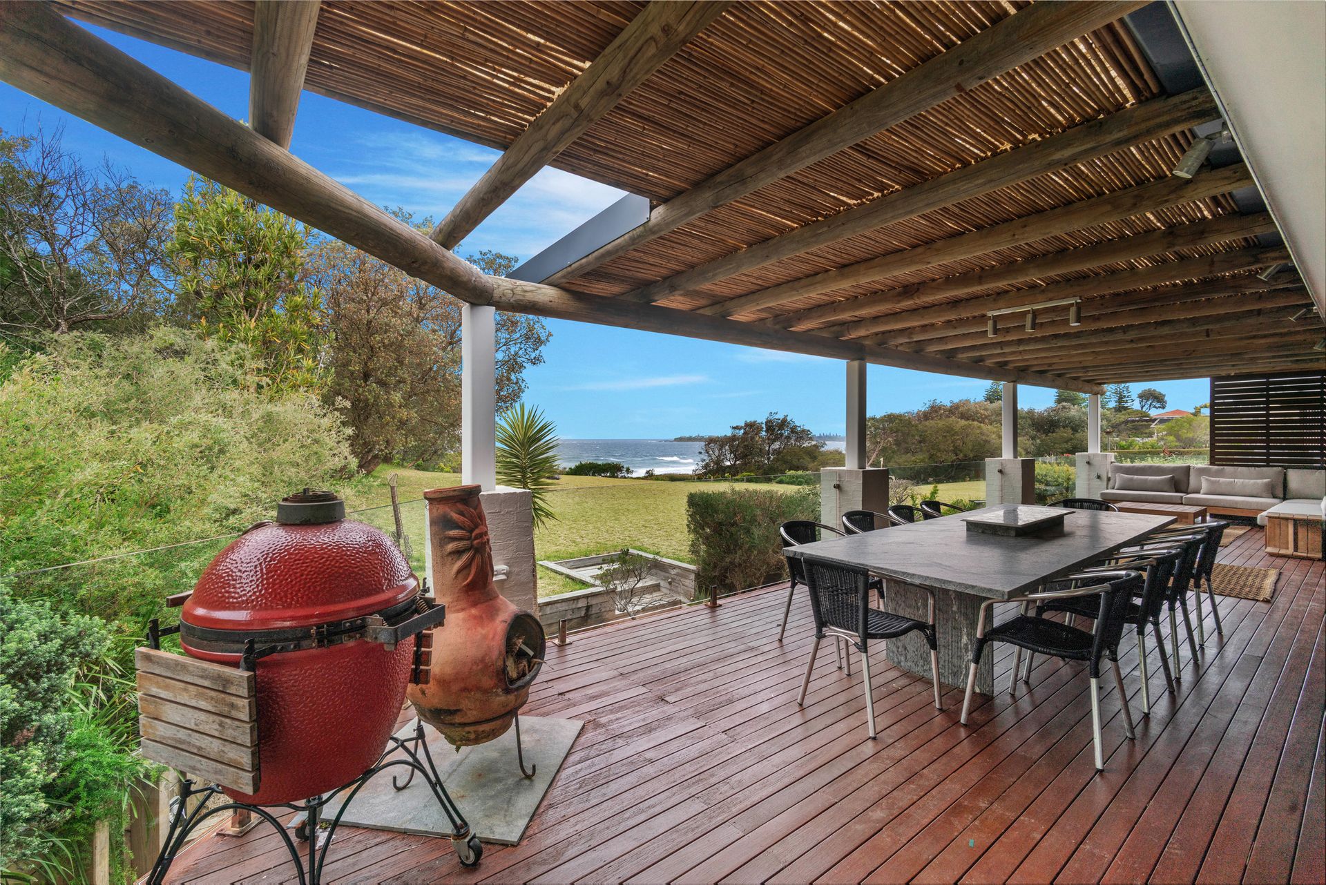 Surfbreak has so much to offer! There is an extensive grass area between the house and the path that leads directly to the beach. Though, the covered outdoor verandah is what guests will enjoy the most as they wind down and listen to the surf breaking nearby! Enjoy long, lazy days on the lounges or a meal at the outdoor dining table. Prefer a hammock? Surfbreak has two hammocks as well! If you want to watch the sun go down, relax in the low lounge chairs that look out to the west. There are also two BBQs including a Kamado on the covered deck which allows cooking in all weather.