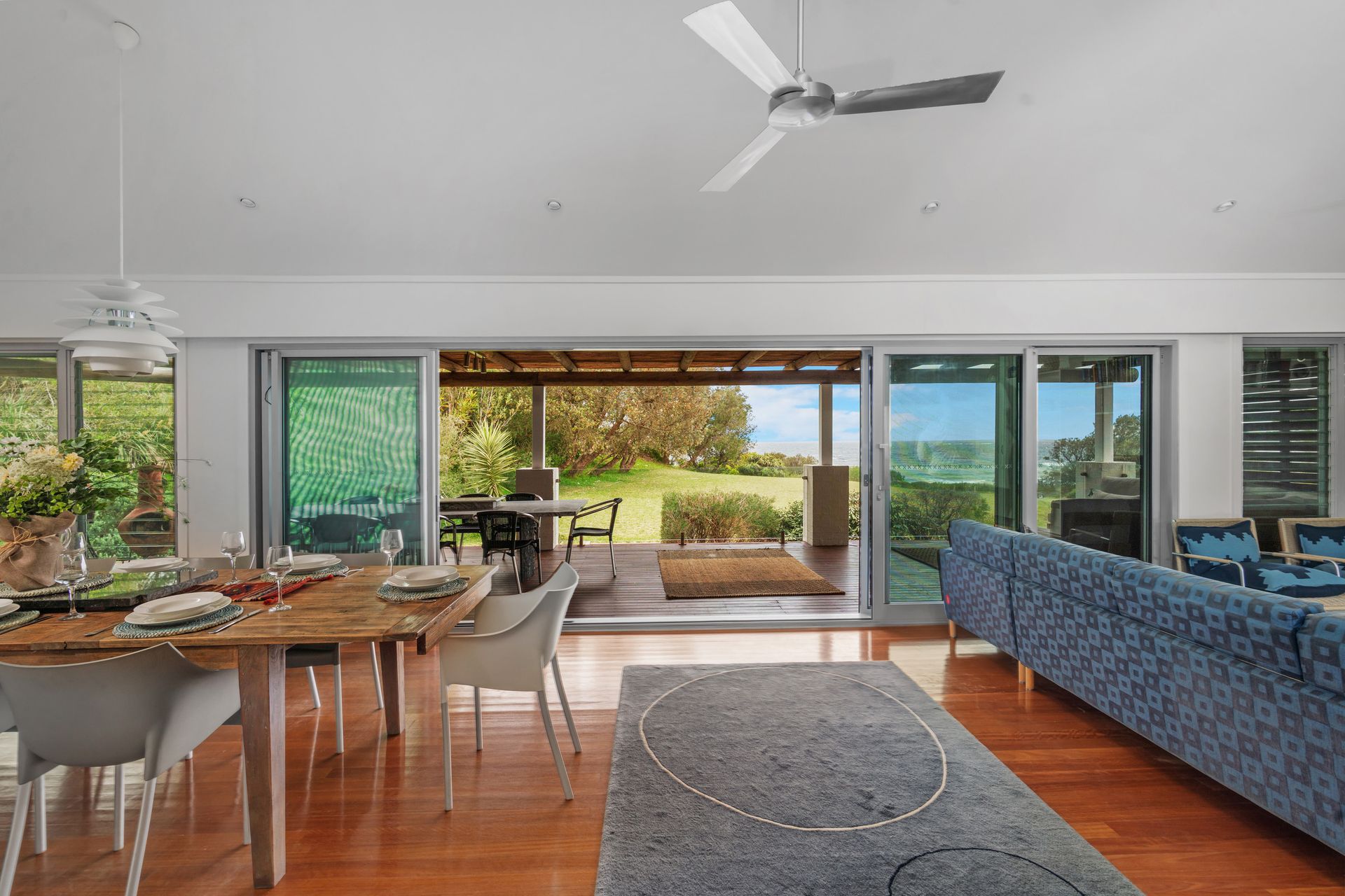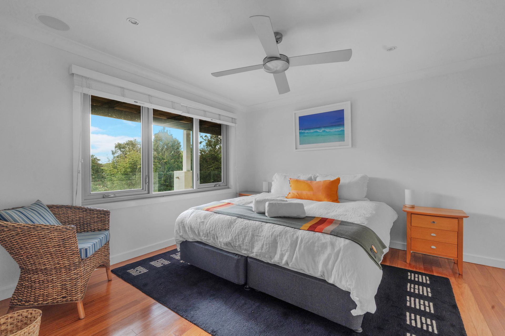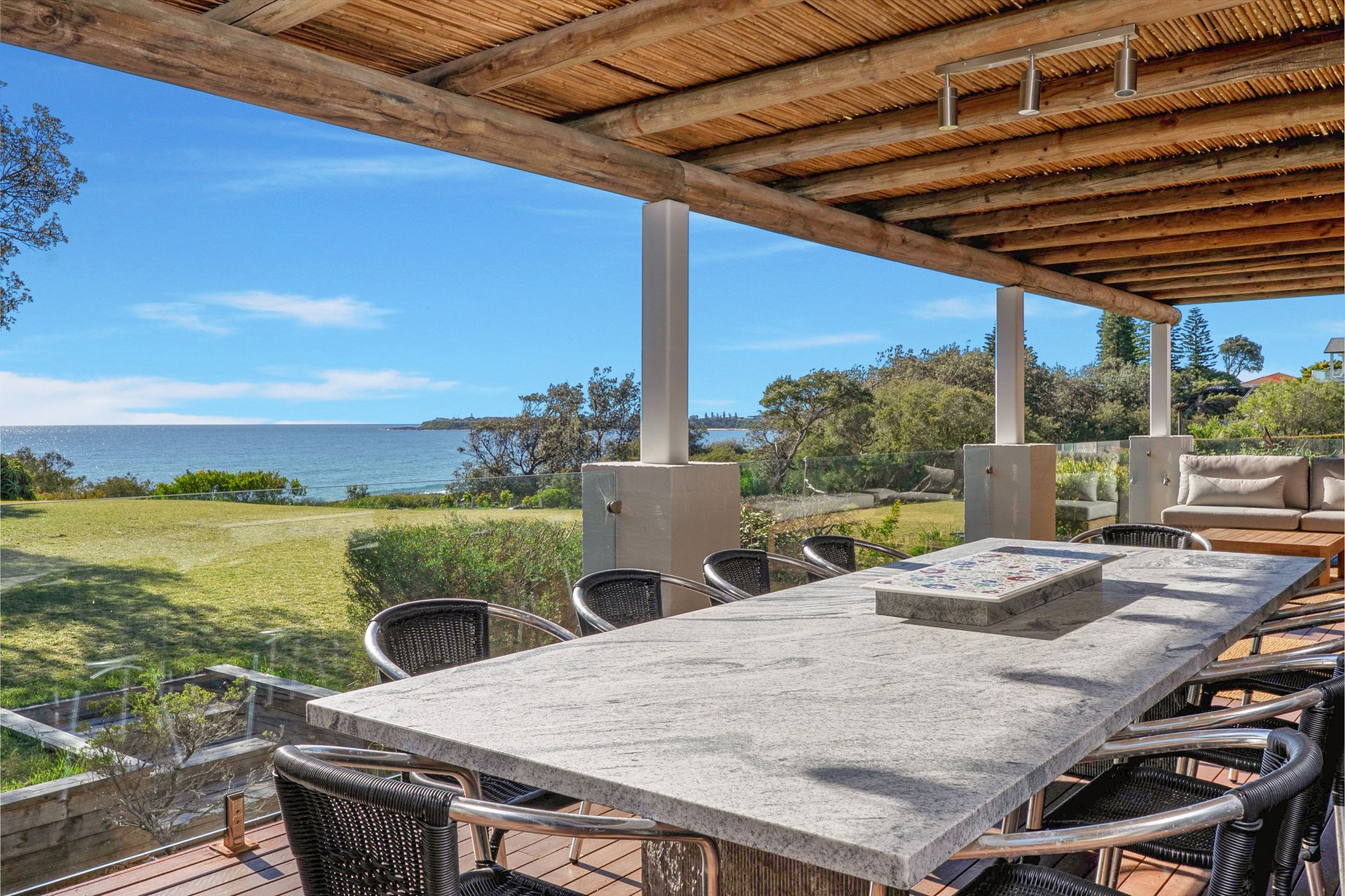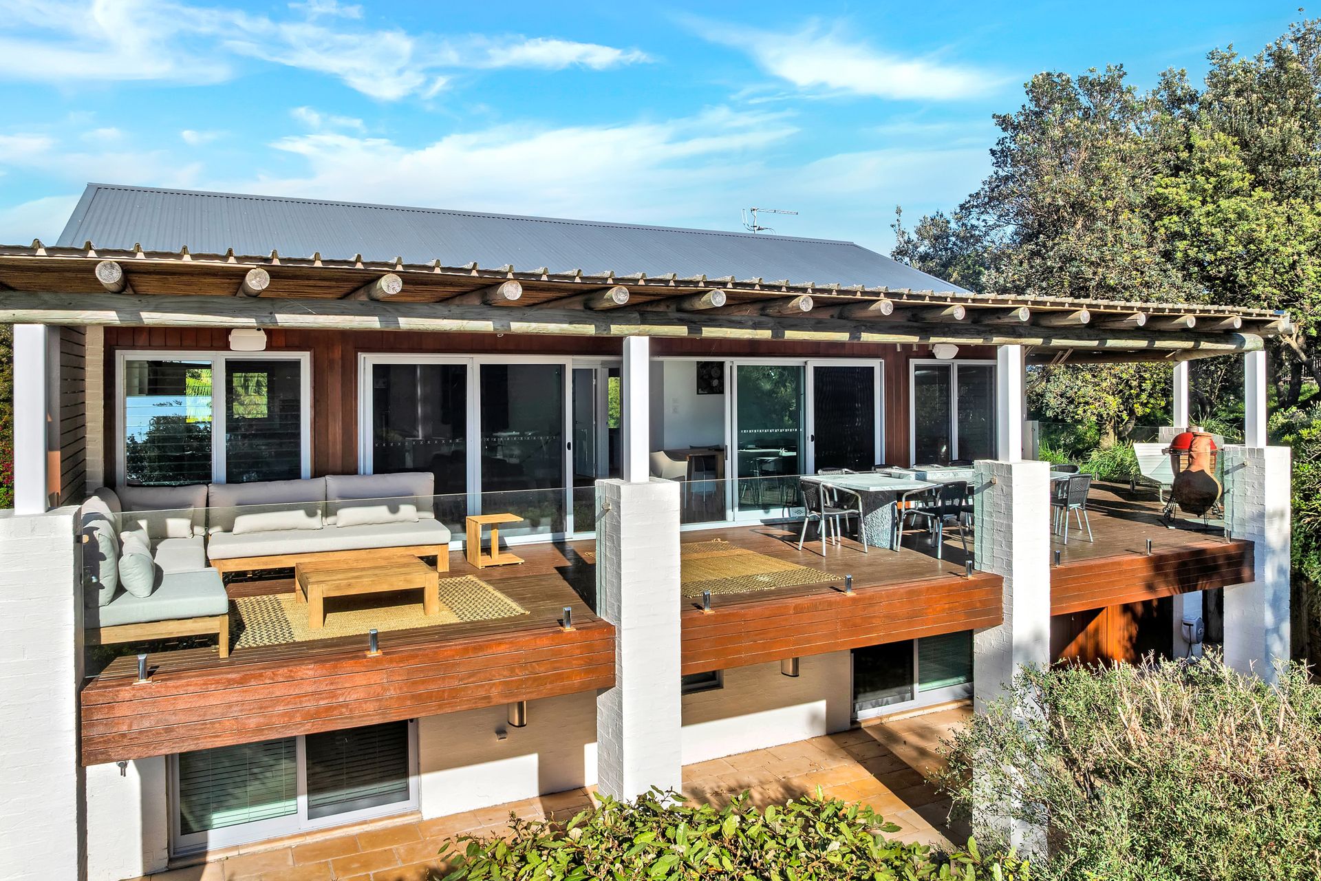 Surfbreak has so much to offer! There is an extensive grass area between the house and the path that leads directly to the beach. Though, the covered outdoor verandah is what guests will enjoy the most as they wind down and listen to the surf breaking nearby! Enjoy long, lazy days on the lounges or a meal at the outdoor dining table. Prefer a hammock? Surfbreak has two hammocks as well! If you want to watch the sun go down, relax in the low lounge chairs that look out to the west. There are also two BBQs including a Kamado on the covered deck which allows cooking in all weather.