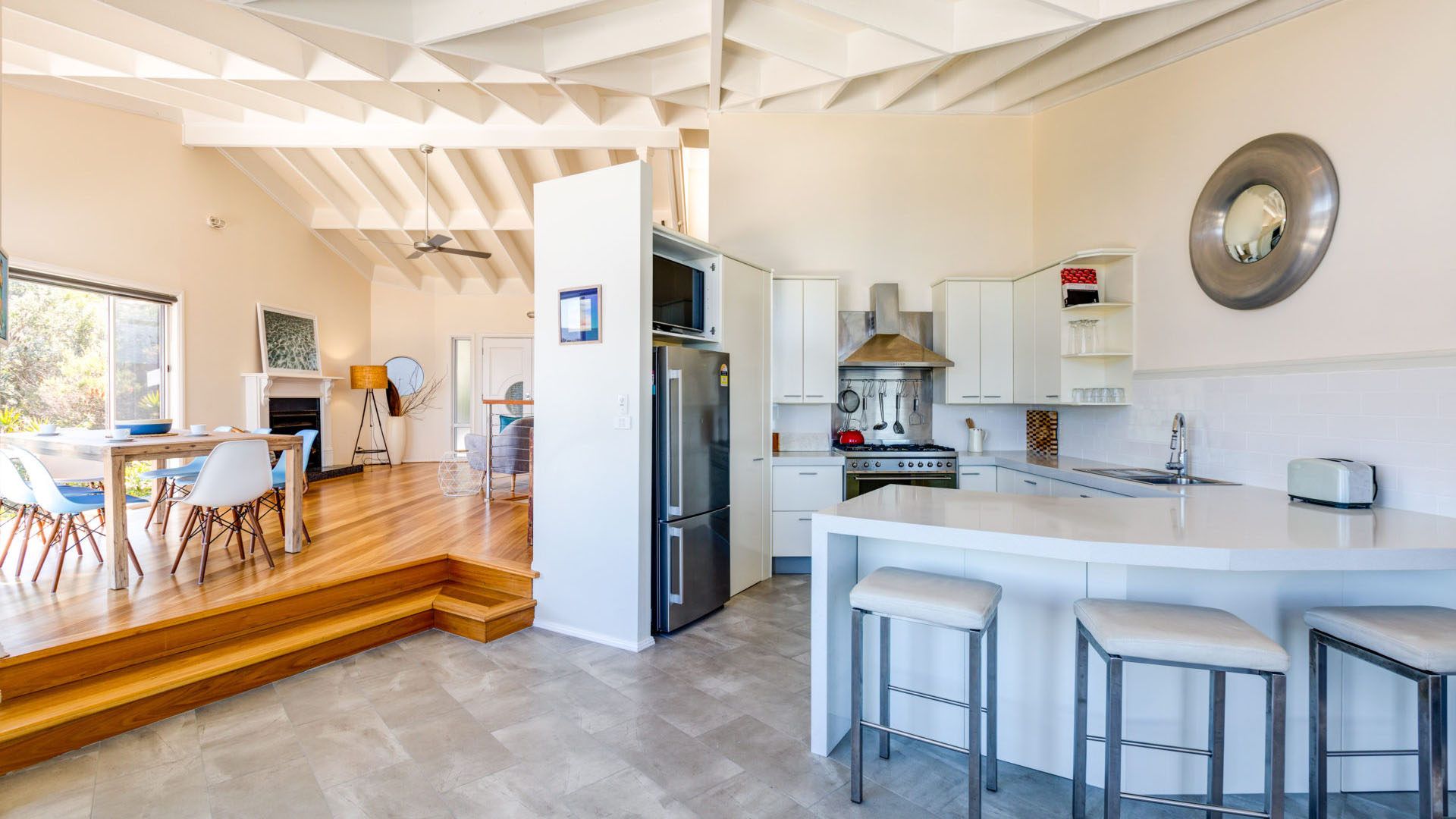 The Lookout is a large and very spacious home, with generous outdoor areas and a big garden to match. It is perfect for a group of up to ten, giving everyone plenty of room to spread out and relax. Dual living areas and multiple decks also help to spread out your party, or allow the kids to hang out away from the adults!