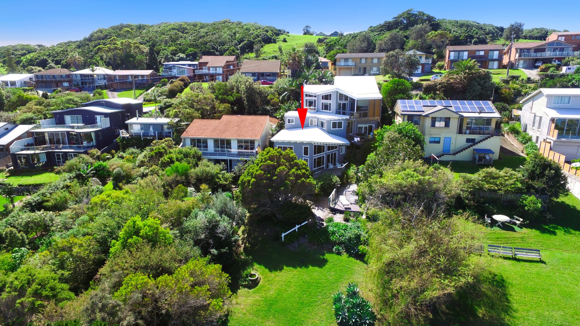 Street level - with views everywhere as you approach! Please note the driveway gradient is steep. The house can be entered either via the garage, or via a pathway that leads from the street to the front door on the main living area of the house.