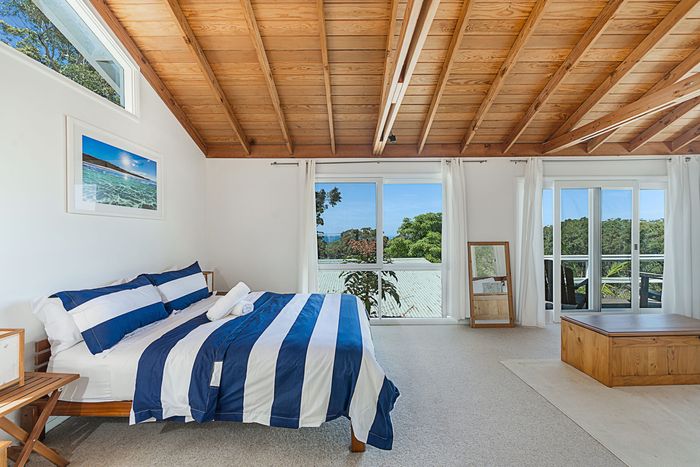 The adjacent dining room has views of the bay and comfortably seats eight. Alternatively, you can breakfast with the birds on the front deck or enjoy a casual BBQ on the spacious, bush-facing rear deck.