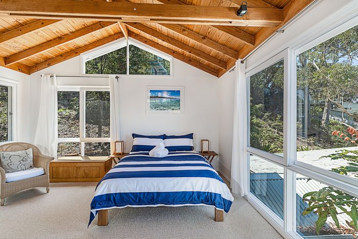 The Pavilion's large windows throughout the house frame views of the bay and bush. There are four decks offering both sunny and shady retreats. You'll feel like you're living in the treetops, though so close to the main beach and Hyams Beach Cafe.