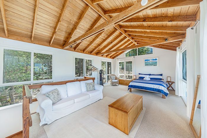 Polished floorboards, plenty of natural light, forest setting, district views with good water glimpses.