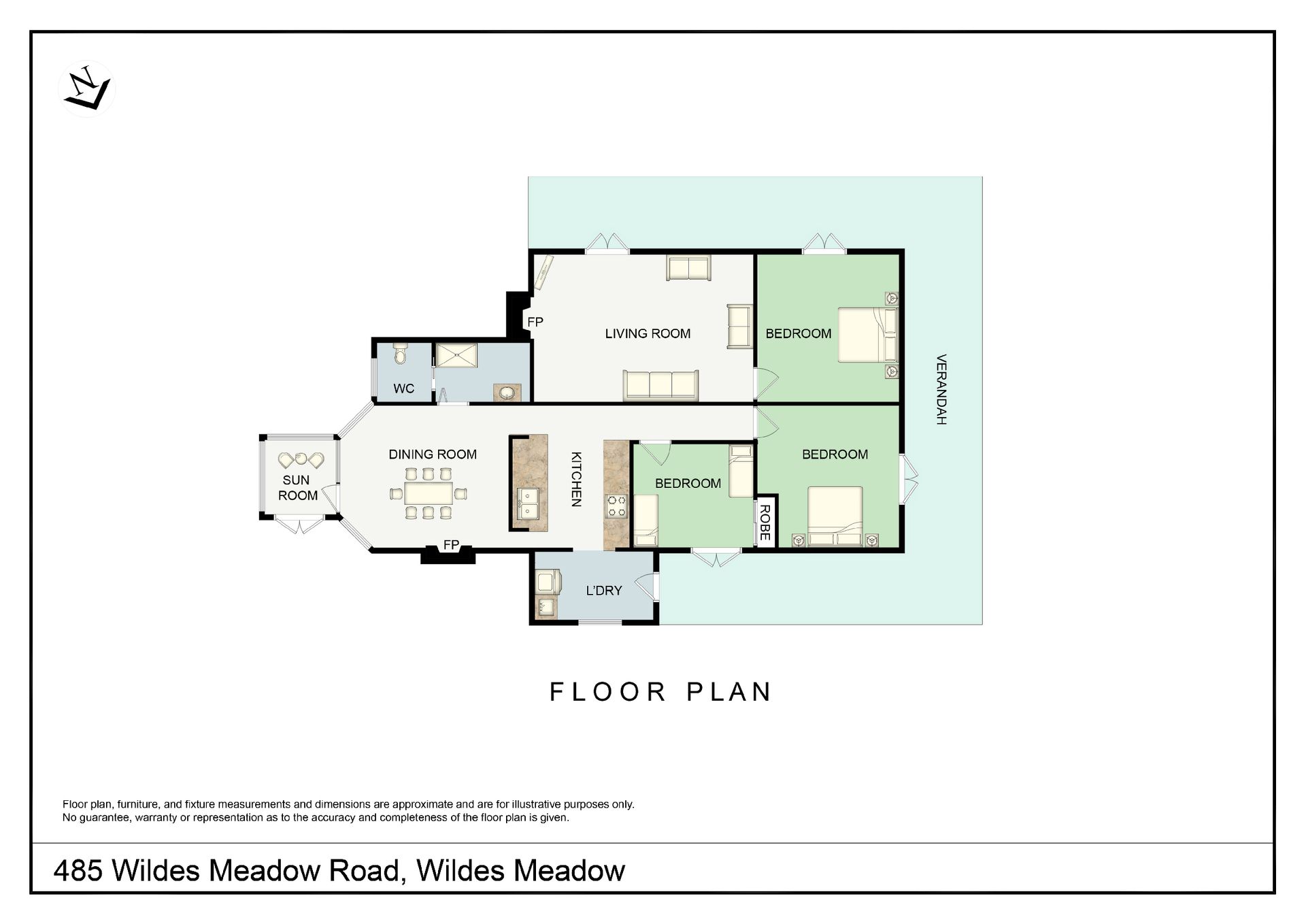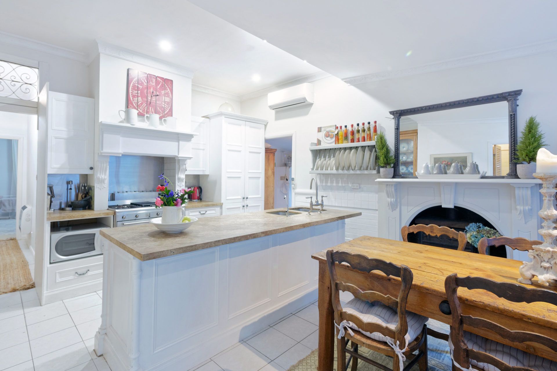 The house is all on one level. You enter via a small glass conservatory, into the dining area and kitchen - both in a classic, traditional style. The house then has an internal laundry, three bedrooms, a traditional lounge room and one shared bathroom. All three bedrooms open onto the wrap around verandah.