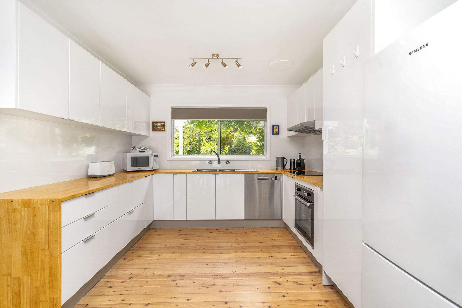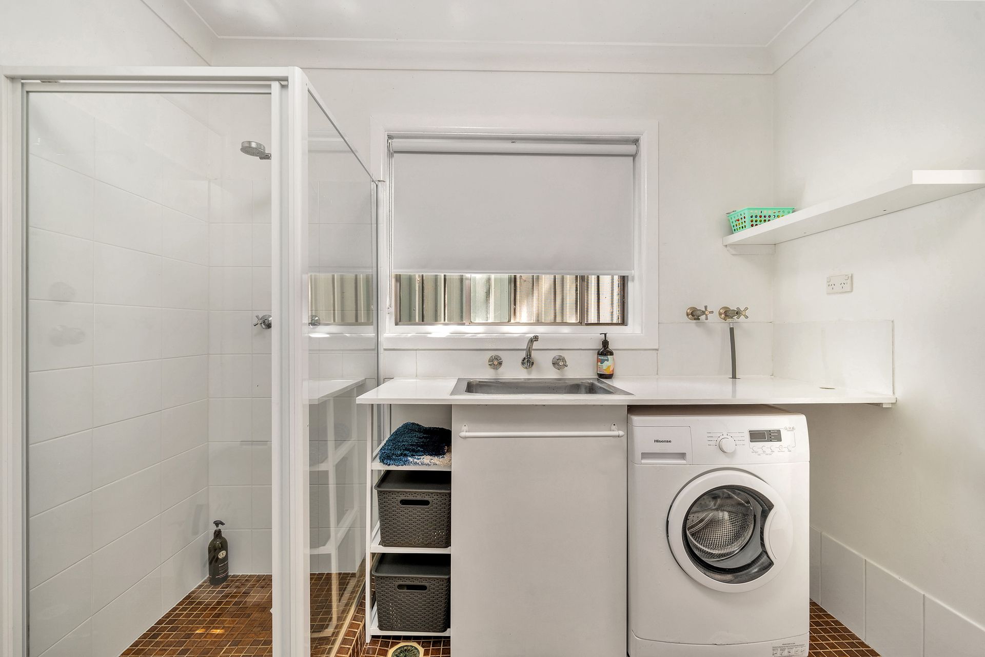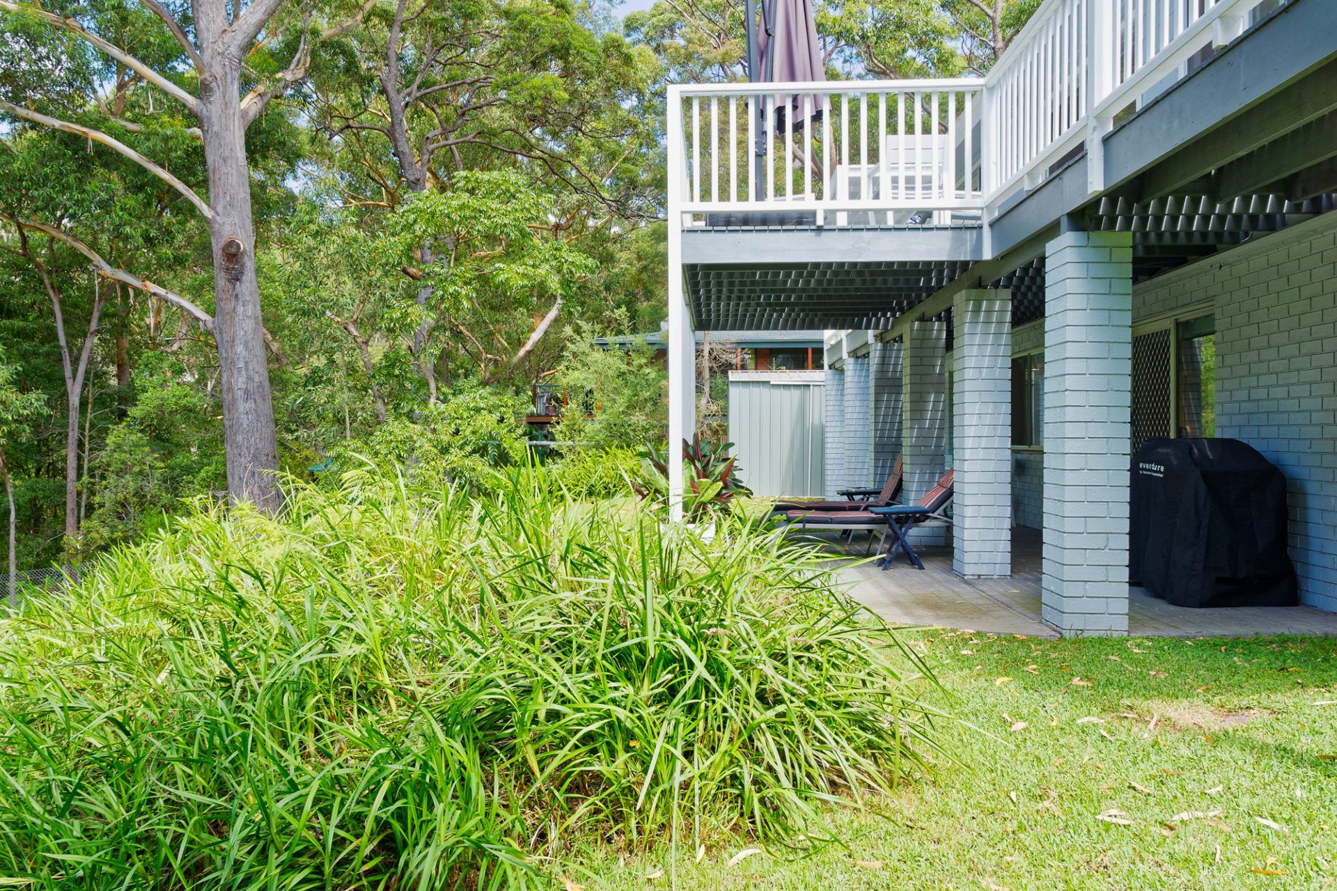 The large, fully secure rear yard backs onto a lovely green and bushy nature reserve. Enjoy your meals on the wrap-around deck, or relax on one of the sun lounges downstairs.