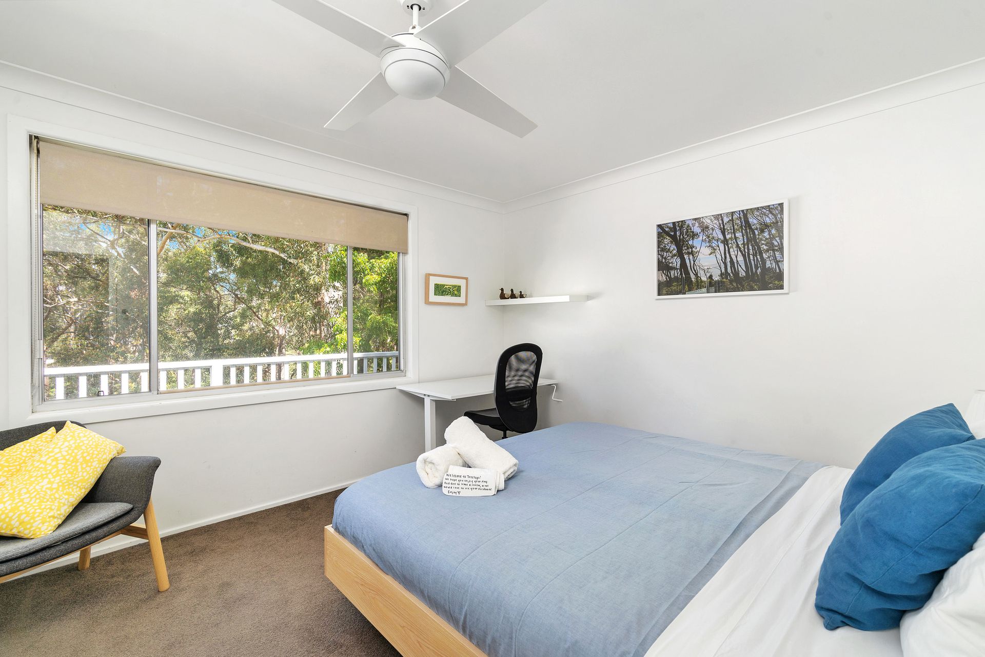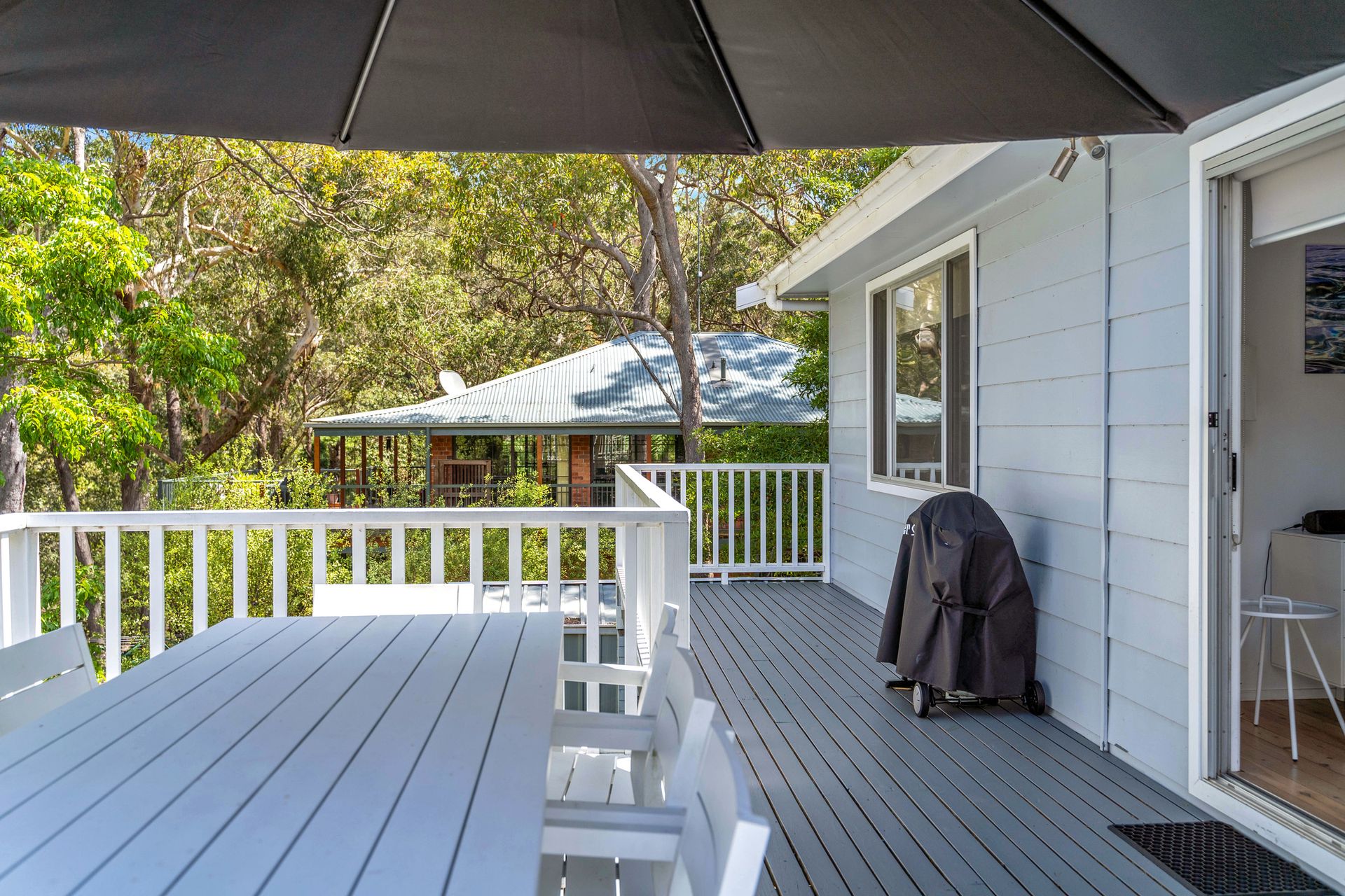 Treetops is a private sanctuary nestled in the Australian bush and immersed in sounds of nature. A truly rejuvenating paradise. Enjoy total tranquillity in this secluded beach house, a short stroll from lovely Blenheim and Greenfield beaches. Treetops is light, airy and spacious with a large deck overlooking the bush reserve at the back of the property. It has abundant bird life and native gardens. Free wifi is available and well-behaved dogs are welcome.