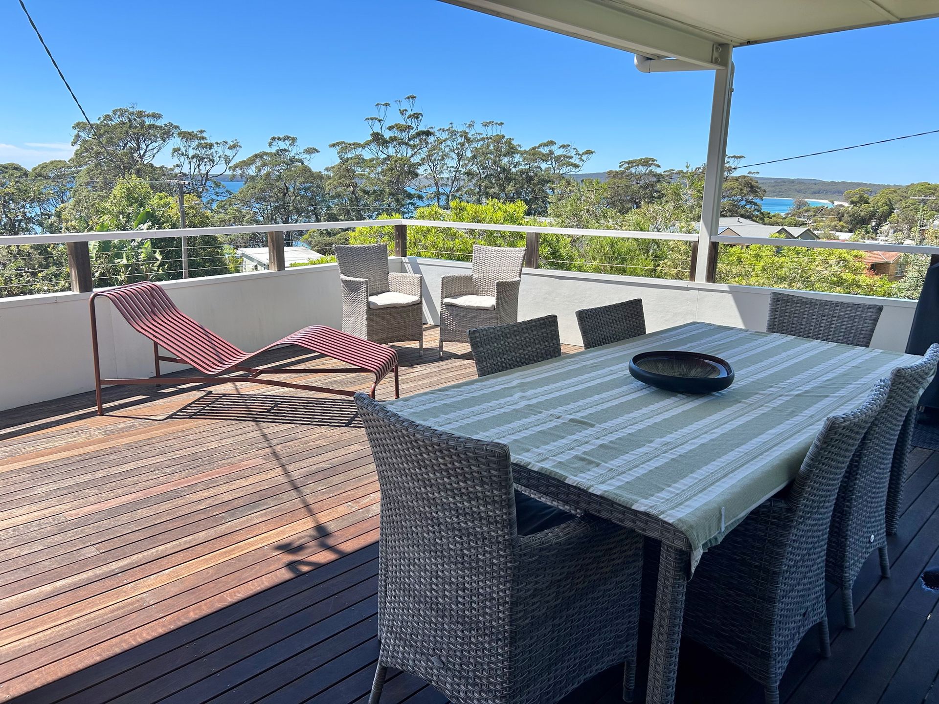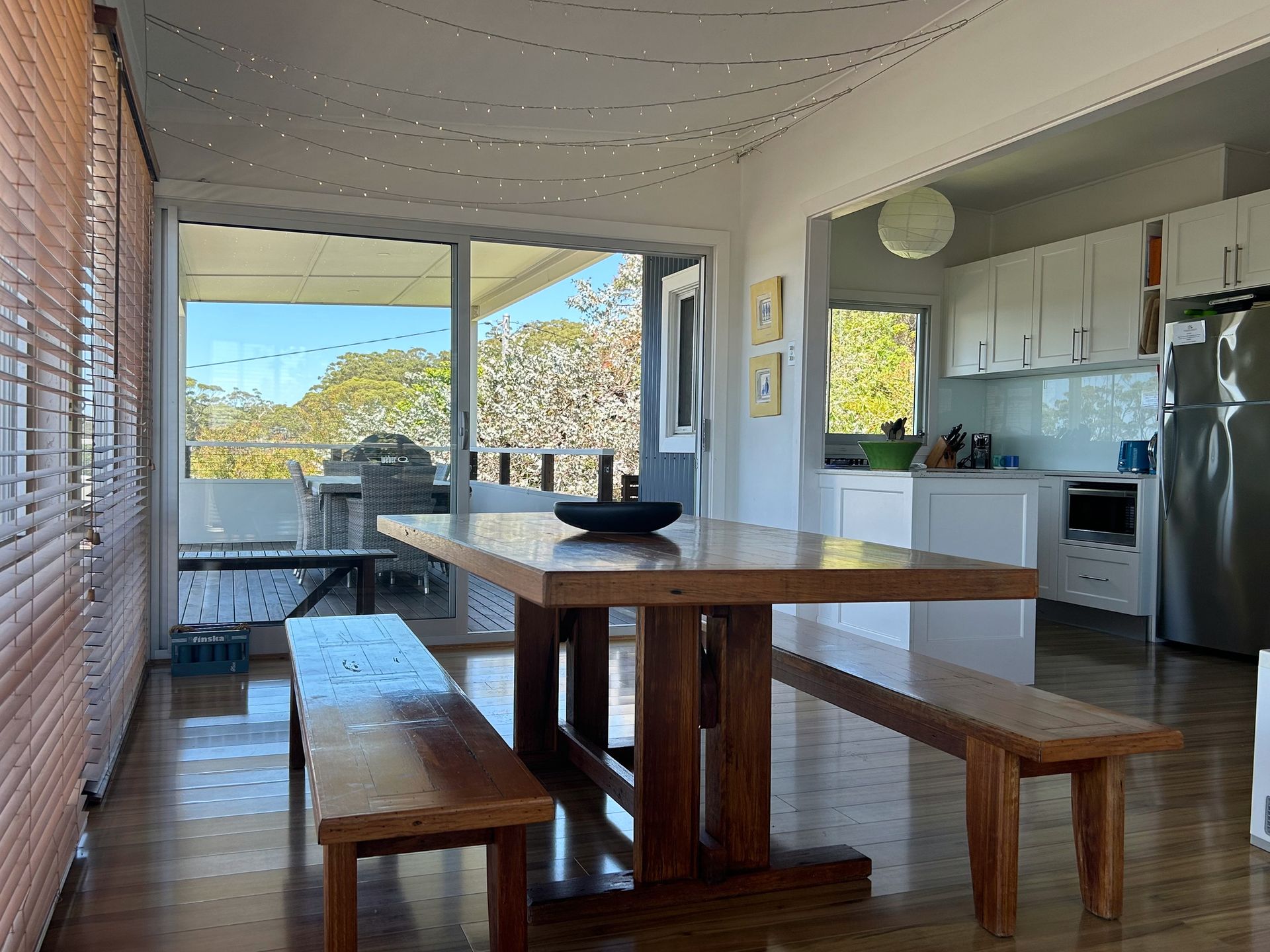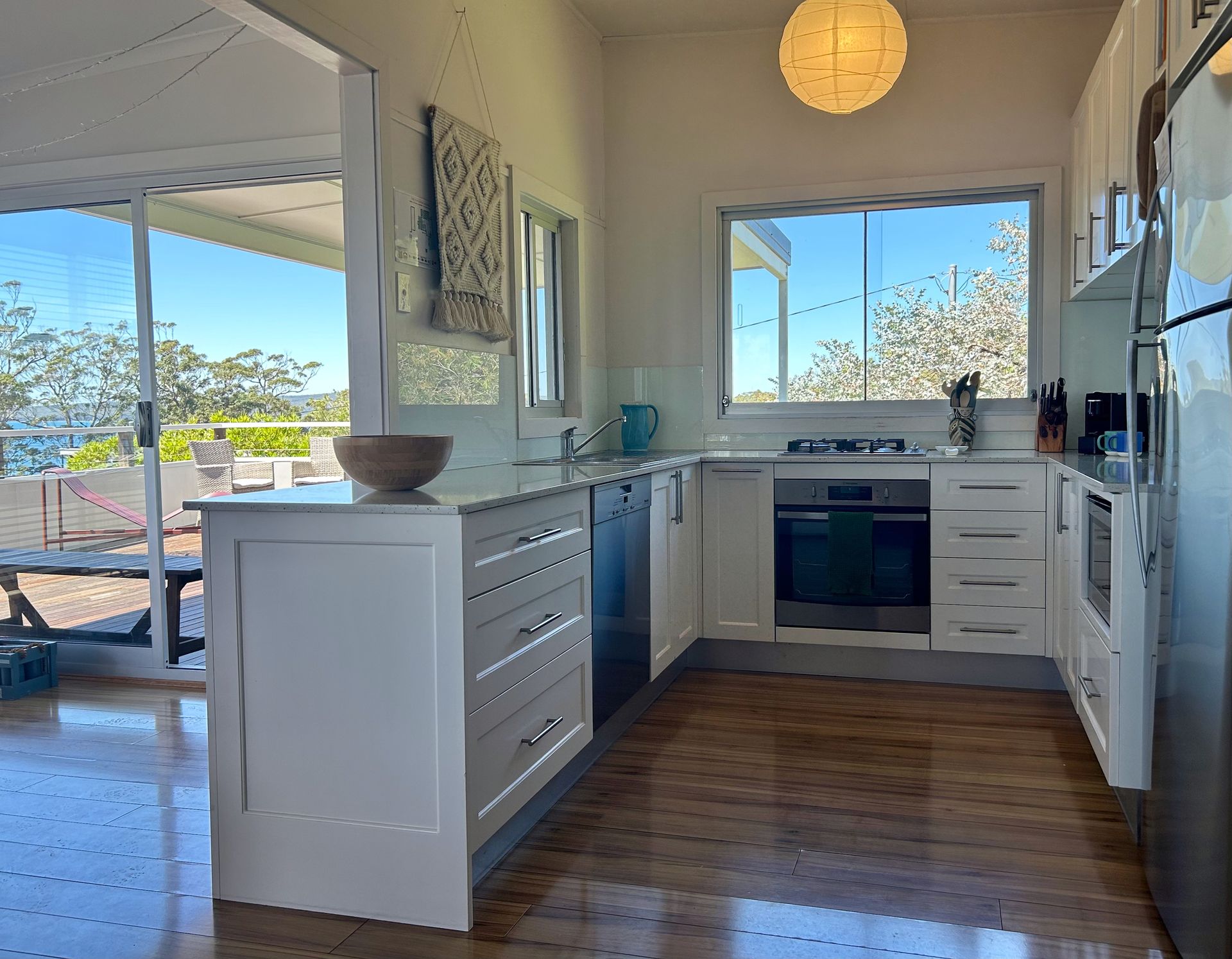 Unwind in stylish comfort. This tastefully renovated and well-equipped home adjoining the Jervis Bay National Park has a large deck with stunning views. The location is superb – easy walking to beaches and the cafe while quiet and private.