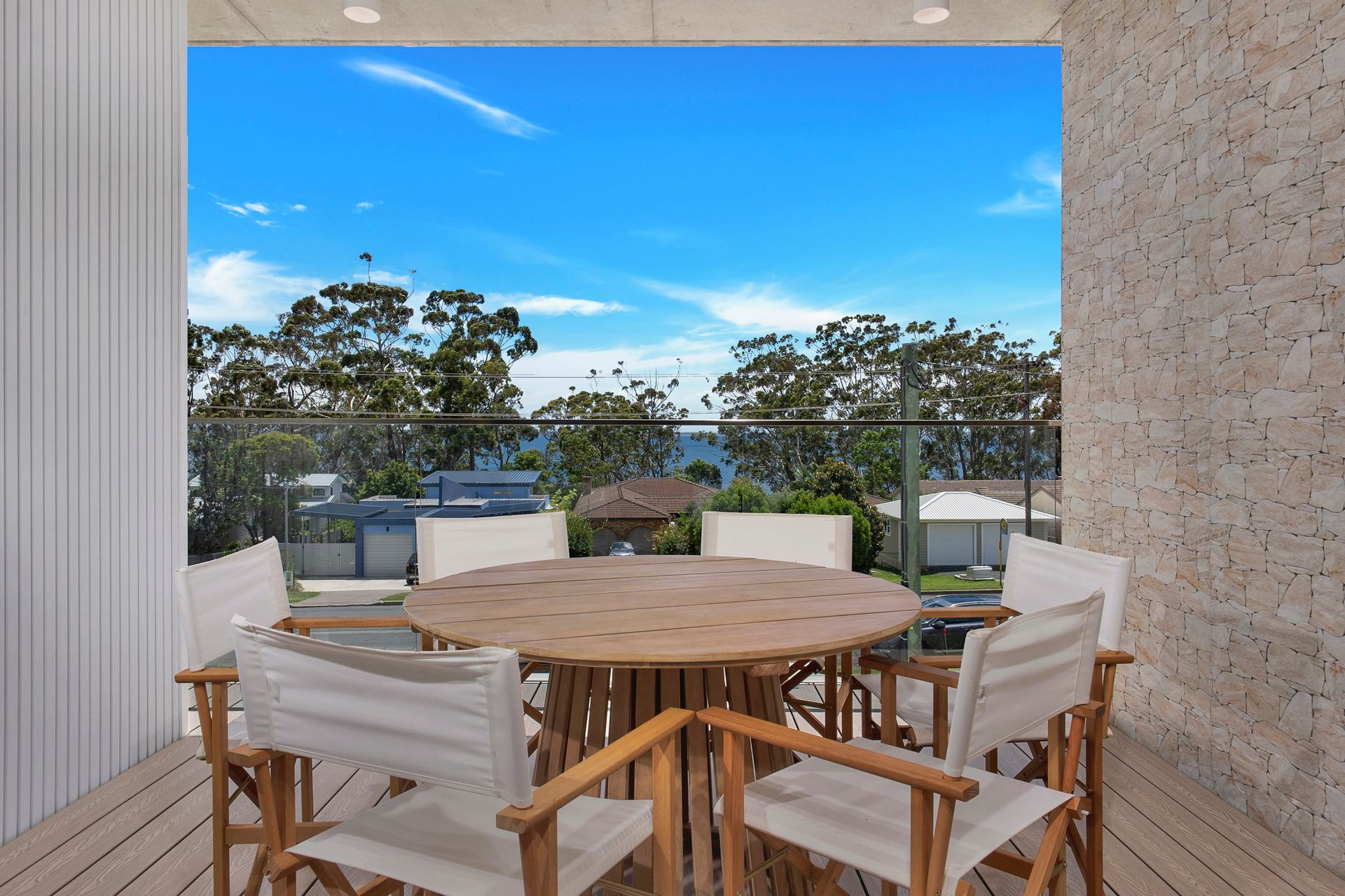 Vinny Beach House 2 is the right hand side, upstairs unit of a duplex building. Enter the unit at the front of the dwelling and walk up the stairs. Enter the open plan living, dining and kitchen area which opens to a balcony where guests can enjoy views of Jervis Bay! Continue down the hall to the king bedroom with ensuite, 2 Queen bedrooms, and shared bathroom.